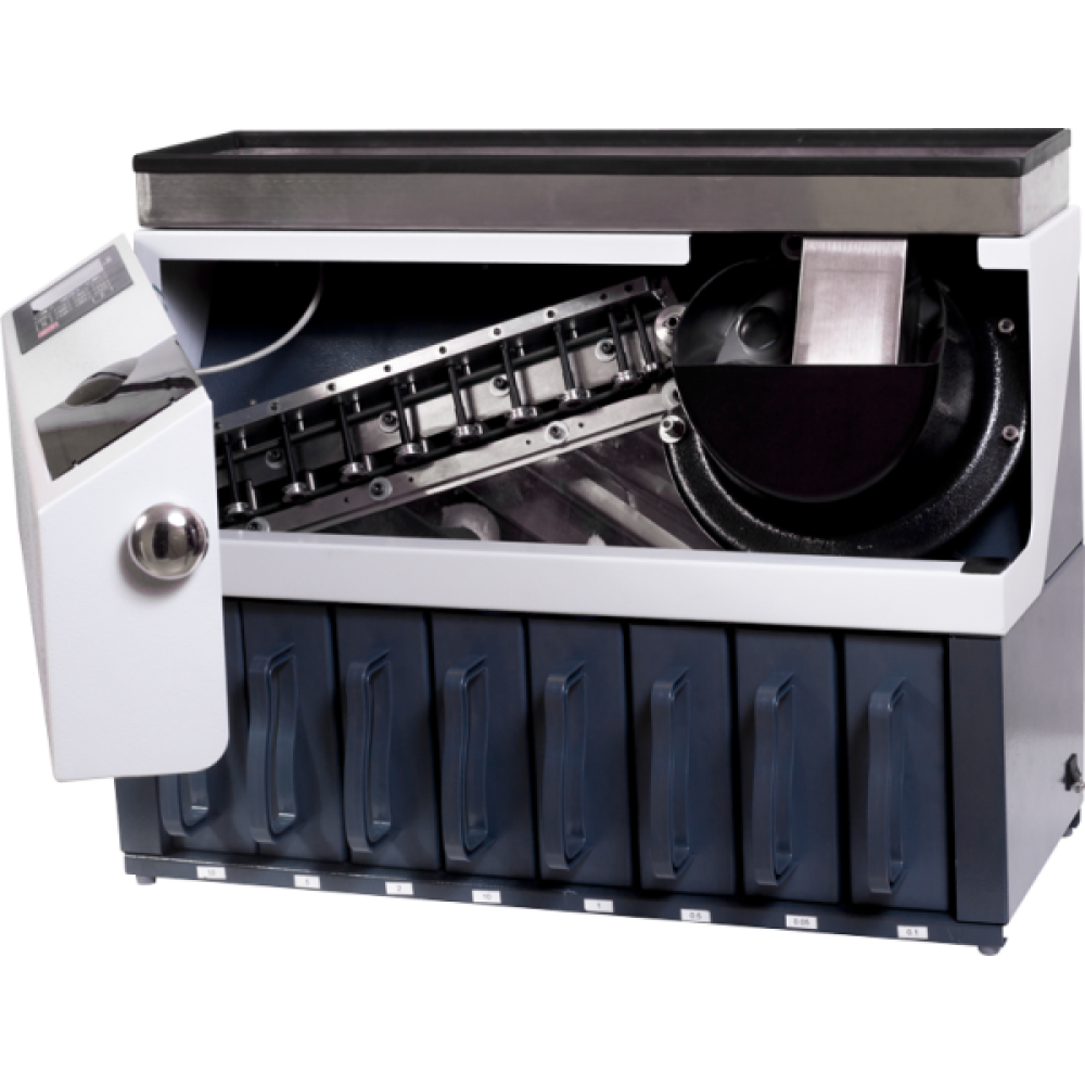 Сортировщик монет Cassida CS800 банковского класса считает монеты разного номинала и одновременно их сортирует. Предназначен для эксплуатации в расчетно-кассовых узлах с большим ежедневным оборотом металлических денег.