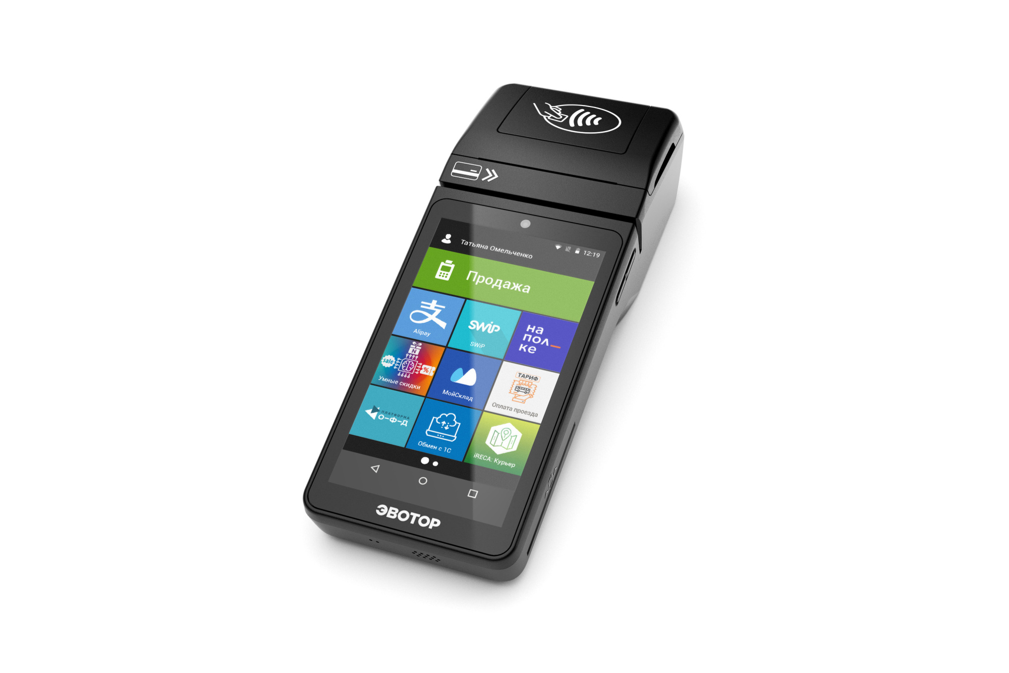 Поэтому разработчик уже предустановил бесплатное торговое программное обеспечение EVOPOS, в котором реализованы все необходимые в торговле функции: загрузка каталога товаров, продажа, возврат, скидки и т.д.