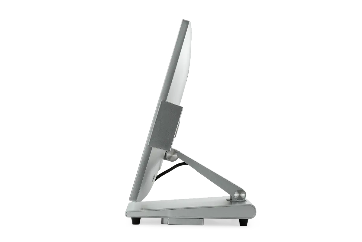 Рабочий процесс с моноблоком комфортен благодаря его бесшумной работе, что важно для кассиров и официантов. Эргономичная подставка позволяет наклонять и поворачивать экран для удобства работы, а при необходимости устройство можно установить на стену.